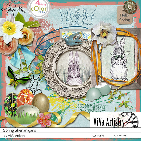 Hey everyone! We're in the last weekend of February, the sun is shining, the temperature outside is moderate, and I'm having some scrappy fun with this month's collection of Fab Friday (formerly 4th Friday Mini O) goodies at Oscraps. There was so much loveliness in the shop, I wanted to have. it. ALL. Alas, time was not my friend, so I limited myself to just a couple of kits. First up, I grabbed this set from ViVa Artistry called Spring Shenanigans: